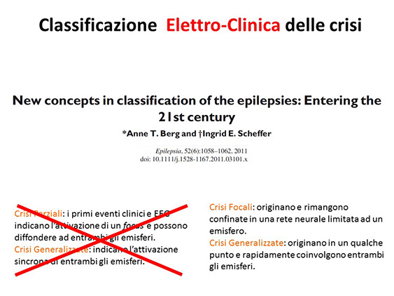 Da un punto di vista elettro-clinico le crisi epilettiche vengono classificate in focali e generalizzate, a seconda che il fenomeno parossistico sia limitato ad un emisfero o coinvolga l'intera corteccia. Non è infrequente che fenomeni localizzati possono diffondere in quadri parossistici generalizzati.