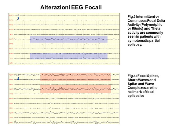 I pattern patologici EEG che più frequentemente si riscontrano in pazienti affetti da Epilessia possono essere la presenza di fenomeni parossistici, alterazioni dell’attività di fondo e pattern misti, in cui il parossismo si sovrappone ad un’alterazione dell’attività di fondo.