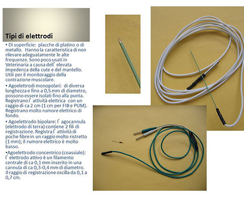 Normalmente questo test negli animali domestici, se si escludono alcuni casi particolari attualmente oggetto di studi, viene eseguito sull’animale in sedazione o anestesia. Questa è una differenza rilevante rispetto ai protocolli impiegati nell’uomo. Il motivo essenziale è la mancanza di collaborazione dell’animale, al quale non è possibile richiedere una sequenza di contrazioni volontarie di intensità crescente fino al completo reclutamento di tutte le unità motorie del muscolo. La mancanza di questa collaborazione ci impedisce di avere alcune informazioni di natura quantititativa e qualitativa sui Potenziali di Unità Motoria prodotti dalle Unità Motorie più piccole del muscolo (le più utili ai fini elettromiografici) e sulla capacità dello stesso di coinvolgere in maniera ottimale tutte le UM durante la contrazione (valutazione dell’Interferenza).